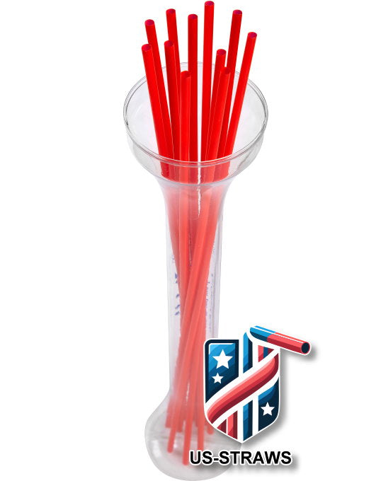 Our red extra-long straws are designed to make enjoying fun drinks even better! At an impressive 18 inches (1 ½ feet) long, these straws are perfect for tall and playful beverages served in glasses like half-yard glasses, fish bowls, or volcano bowls.